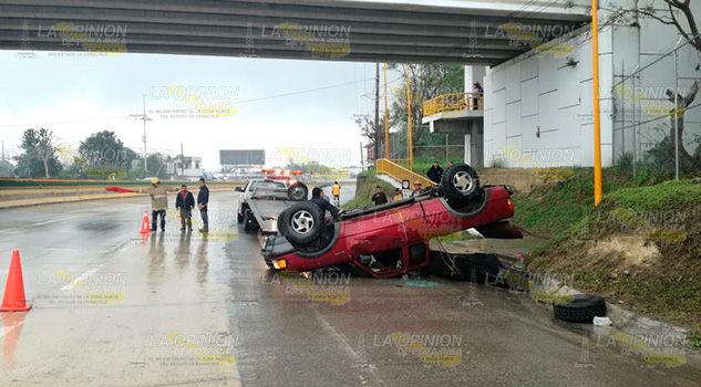 Tuxpan, Ver.- Camioneta, que en apariencia era manejada a exceso de velocidad, terminó volcada y con los neumáticos hacia arriba, por fortuna su conductor resultó ileso, autoridades realizaron las diligencias de rigor y remitieron la unidad al corralón de la Policía Federal para los trámites correspondientes.