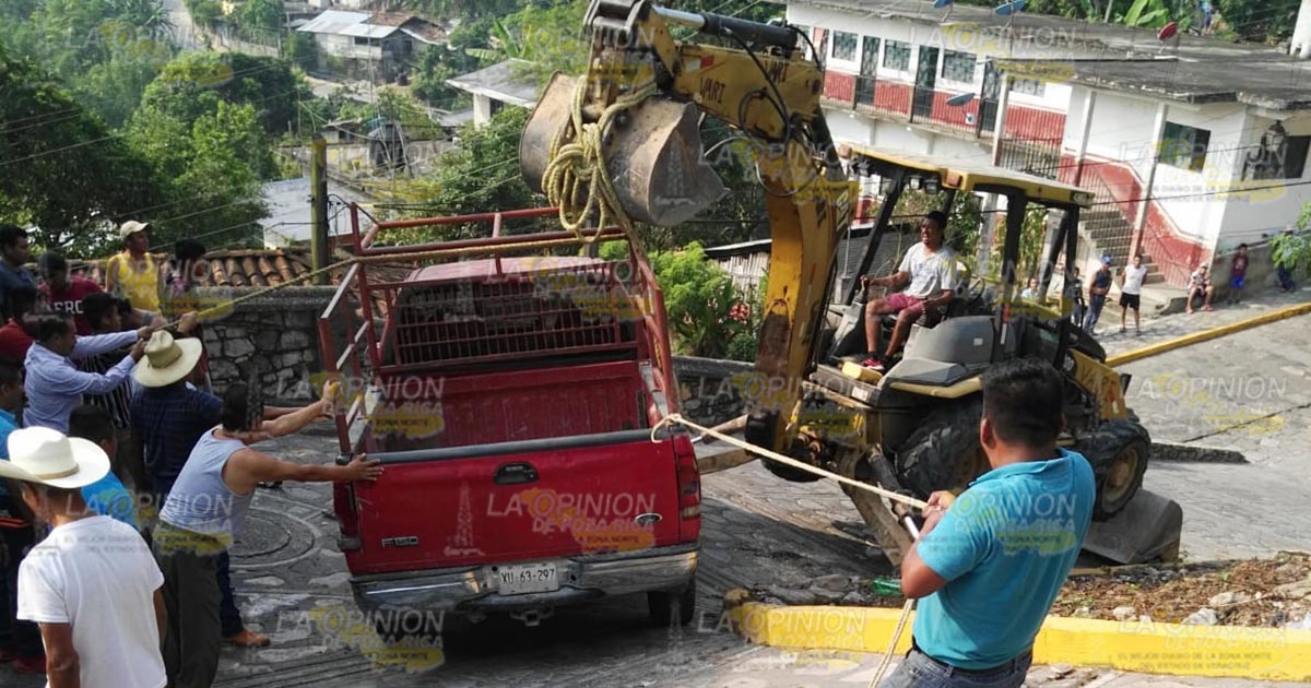 El accidente se registró sobre la calle Benito Juárez, a la salida de la calle Progreso, del barrio antes citado, por donde bajaba una camioneta Ford, Pick-Up, de color rojo, con placas XU-632-97 del Estado de México y la cual quedó costada a punto de caer a un barranco.