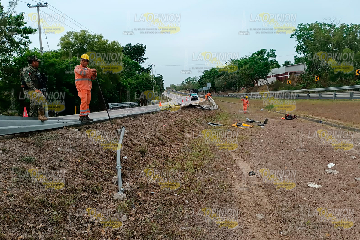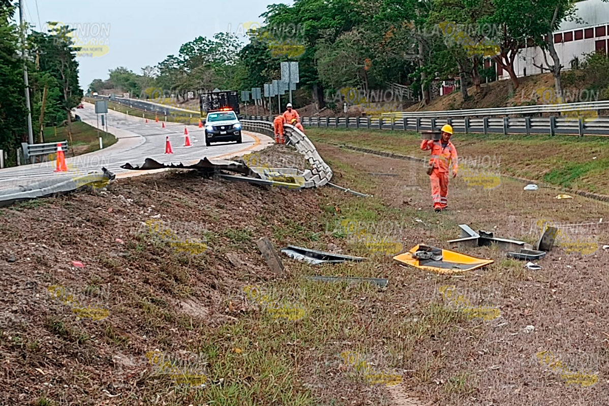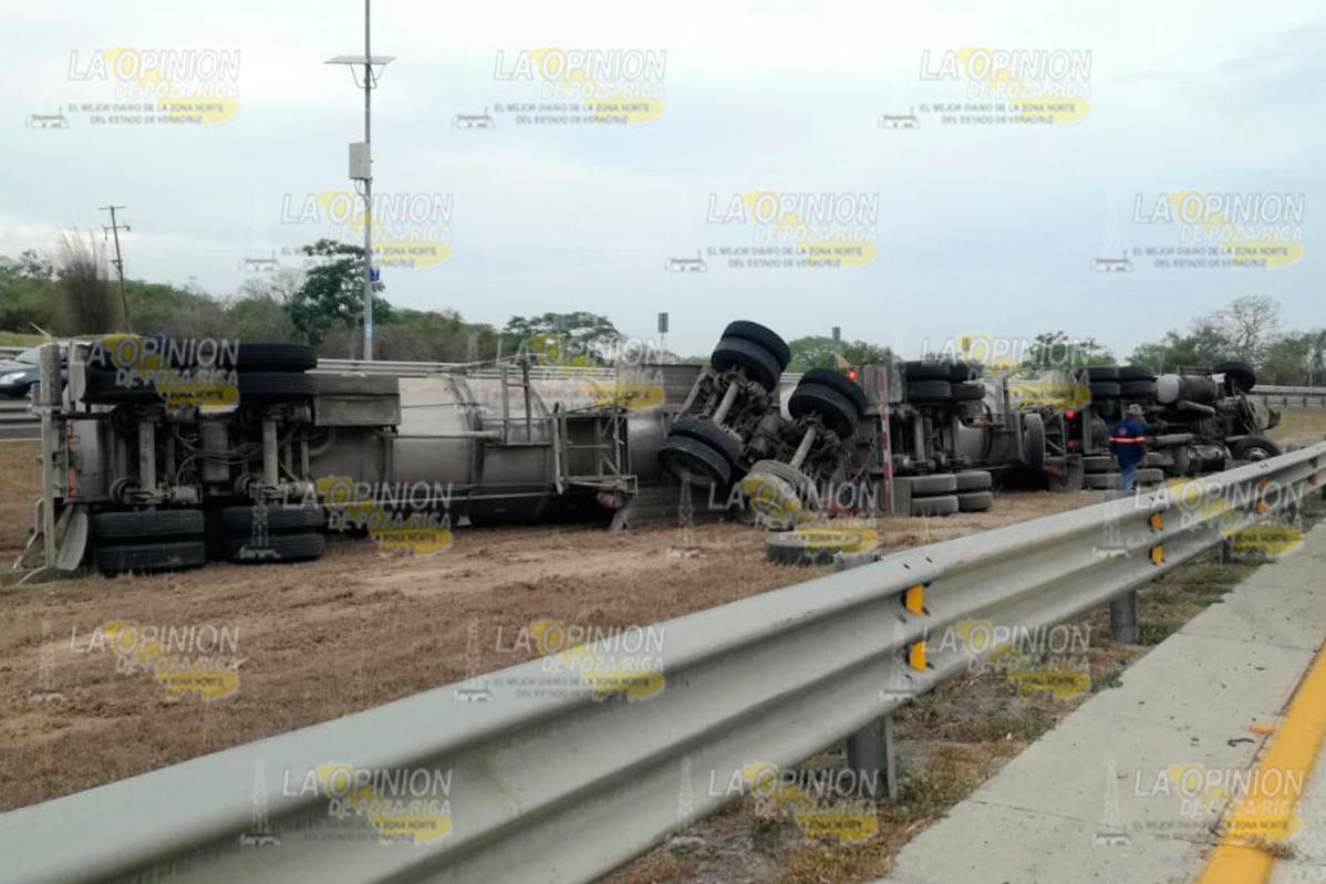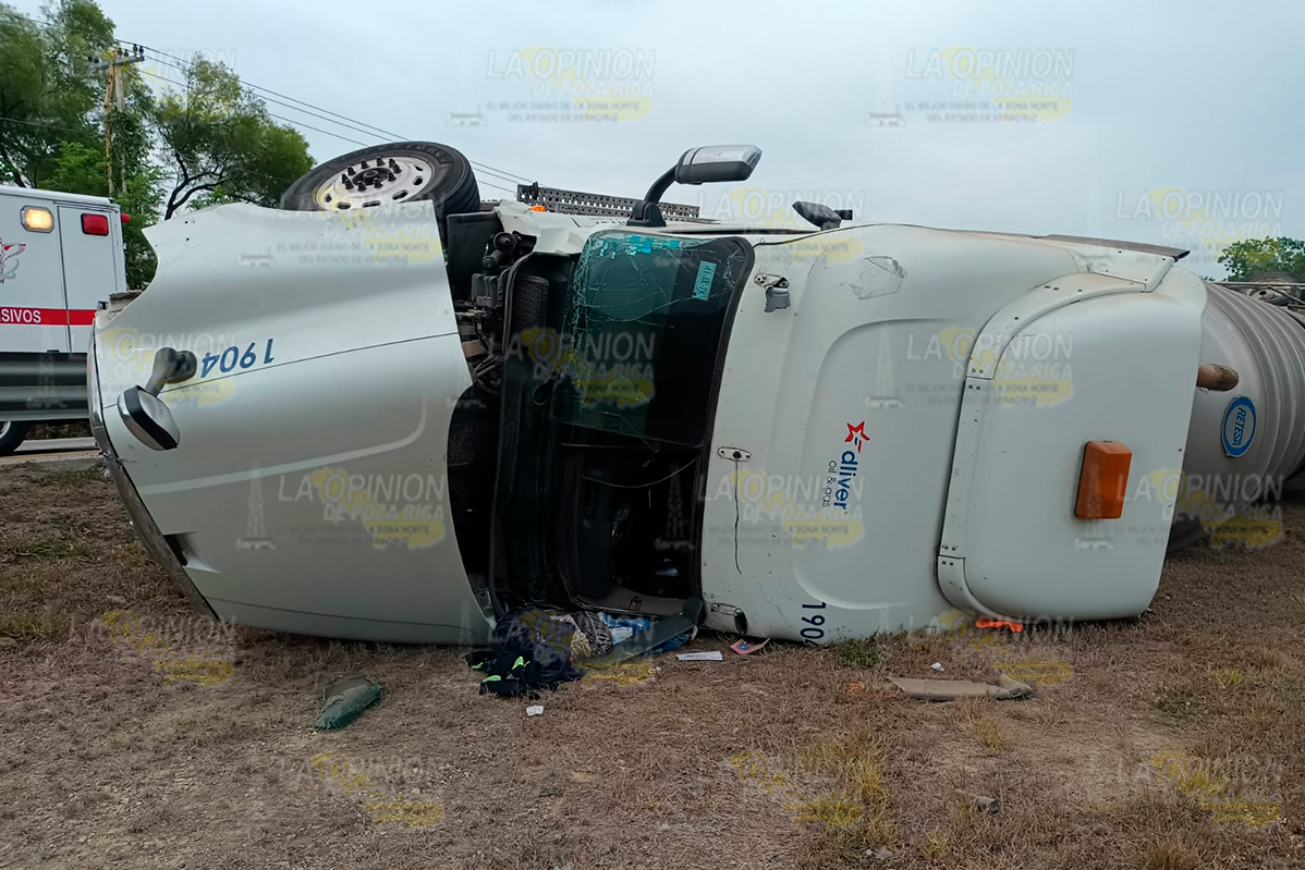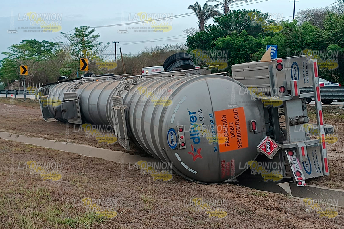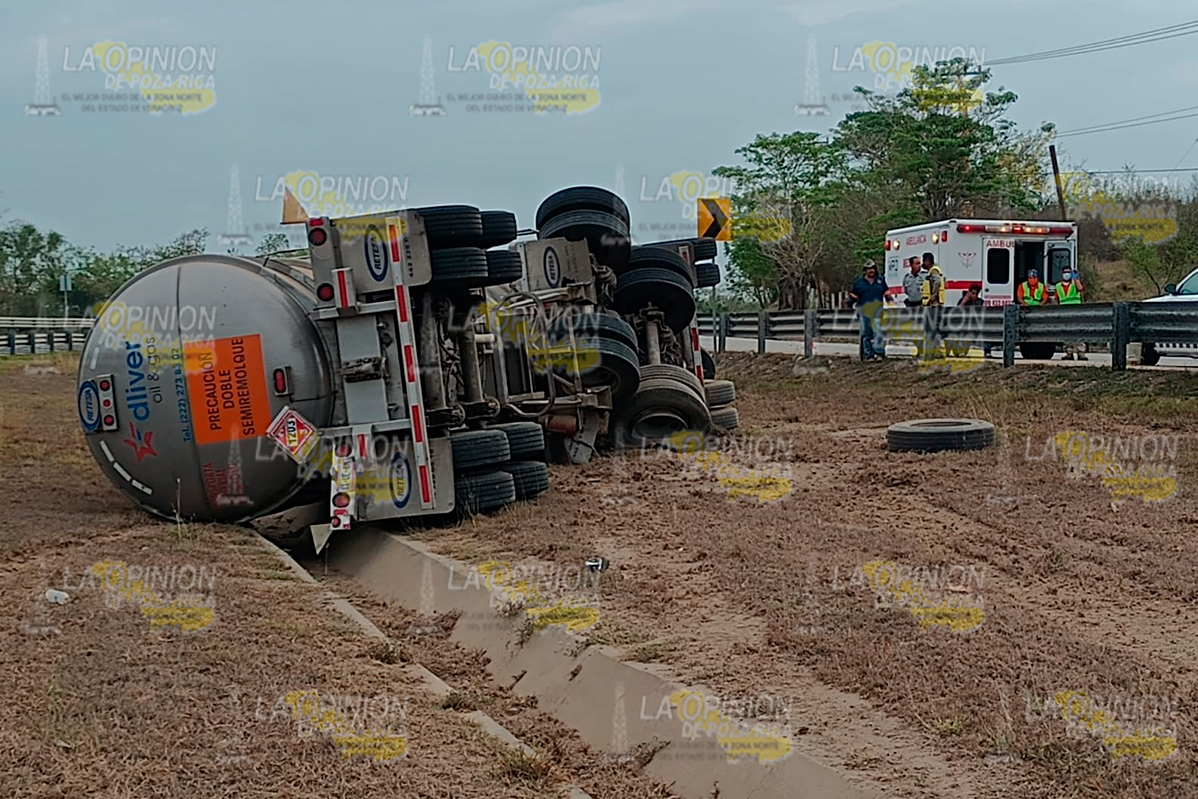 En el lugar una pipa de la empresa Dilver Oil&Gas, vacía, con placas de circulación 81UE8M del Servicio Público Federal, volcó de forma aparatosa y quedó recostadas sobre su costado izquierdo.
