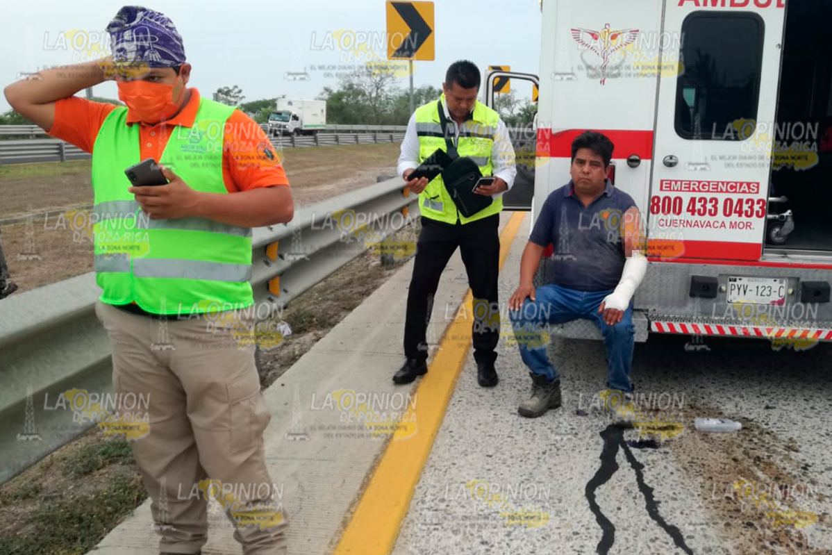 Tras el percance quedó lesionado, Felipe C.C., de 40 años, operador de la pesada unidad quien a pesar de resultar con una lesión en el brazo derecho no quiso ser hospitalizado.