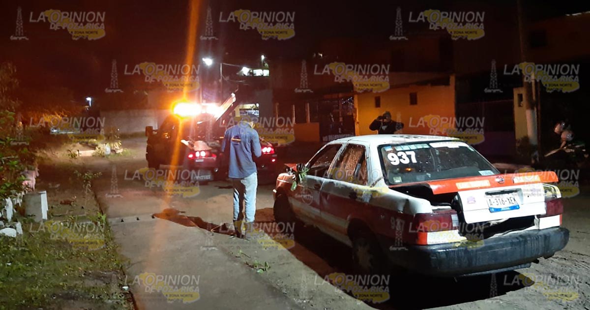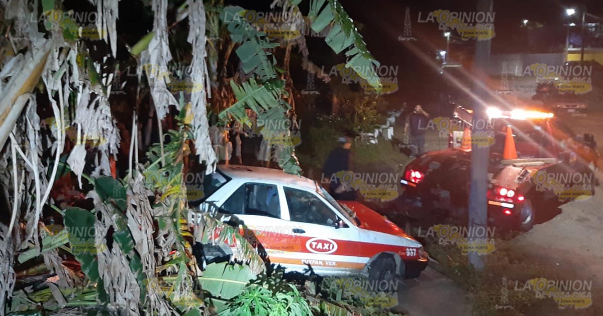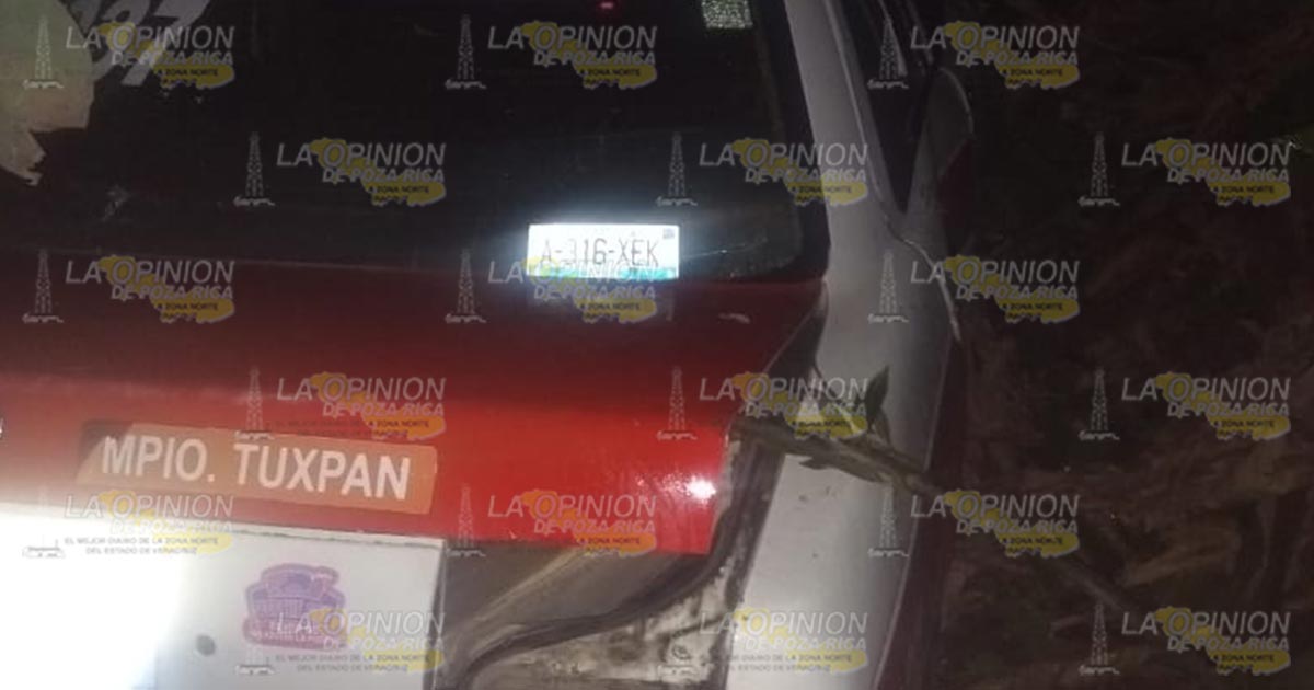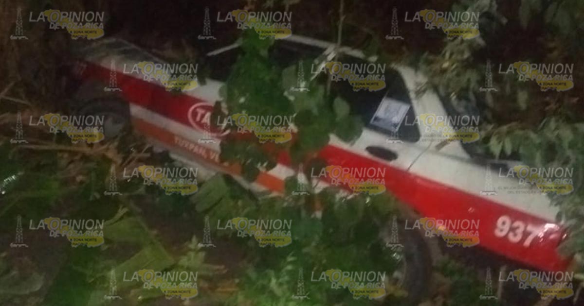 Tuxpan, Ver.- Taxi de este puerto fue encontrado volcado y abandonado en el fondo de un barranco; autoridades desconocen si hubo o no lesionados por lo que se esperan que el duelo y/o conductor acudan a reclamar el vehículo para conocer los pormenores.