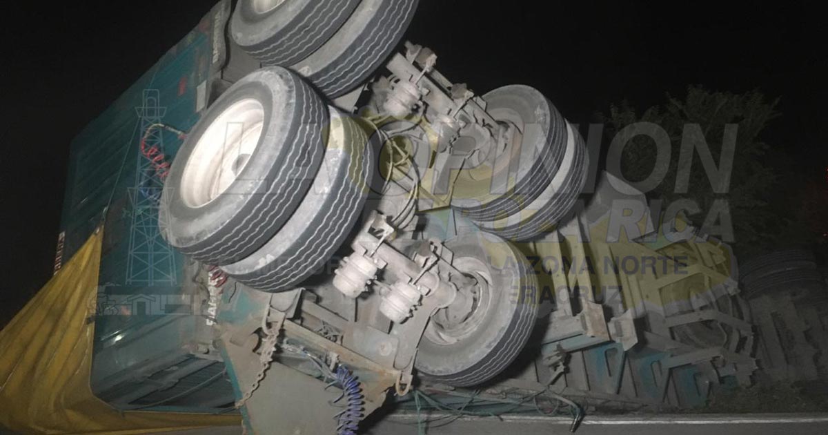 Los hechos se registraron alrededor de las 20:30 horas en el bulevar Tajín, donde automovilistas que circulaban sobre este tramo carretero reportaron una volcadura de una pesada unidad, se presume que una falla mecánica pudo originar el accidente.