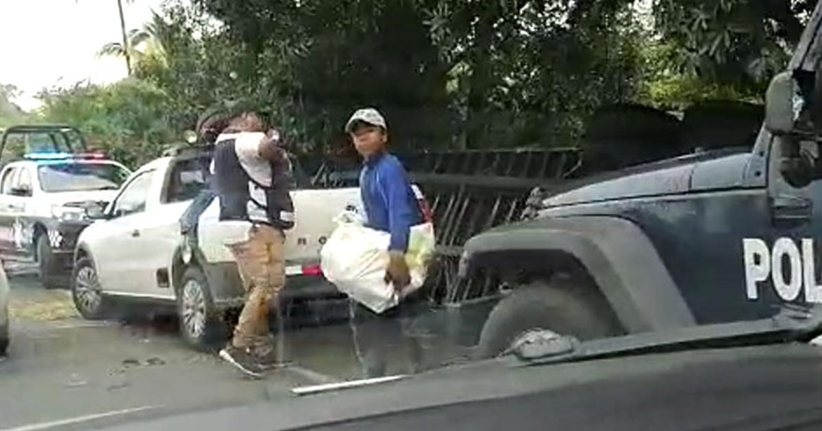 Si bien había policías estatales y federales en el lugar, los mismos no hicieron nada por impedir el robo de las bebidas.