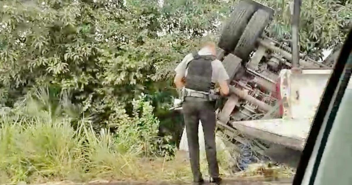 Tras el percance llegaron docenas de personas no a auxiliar al operador de la unidad de carga, sino a llevarse el producto.