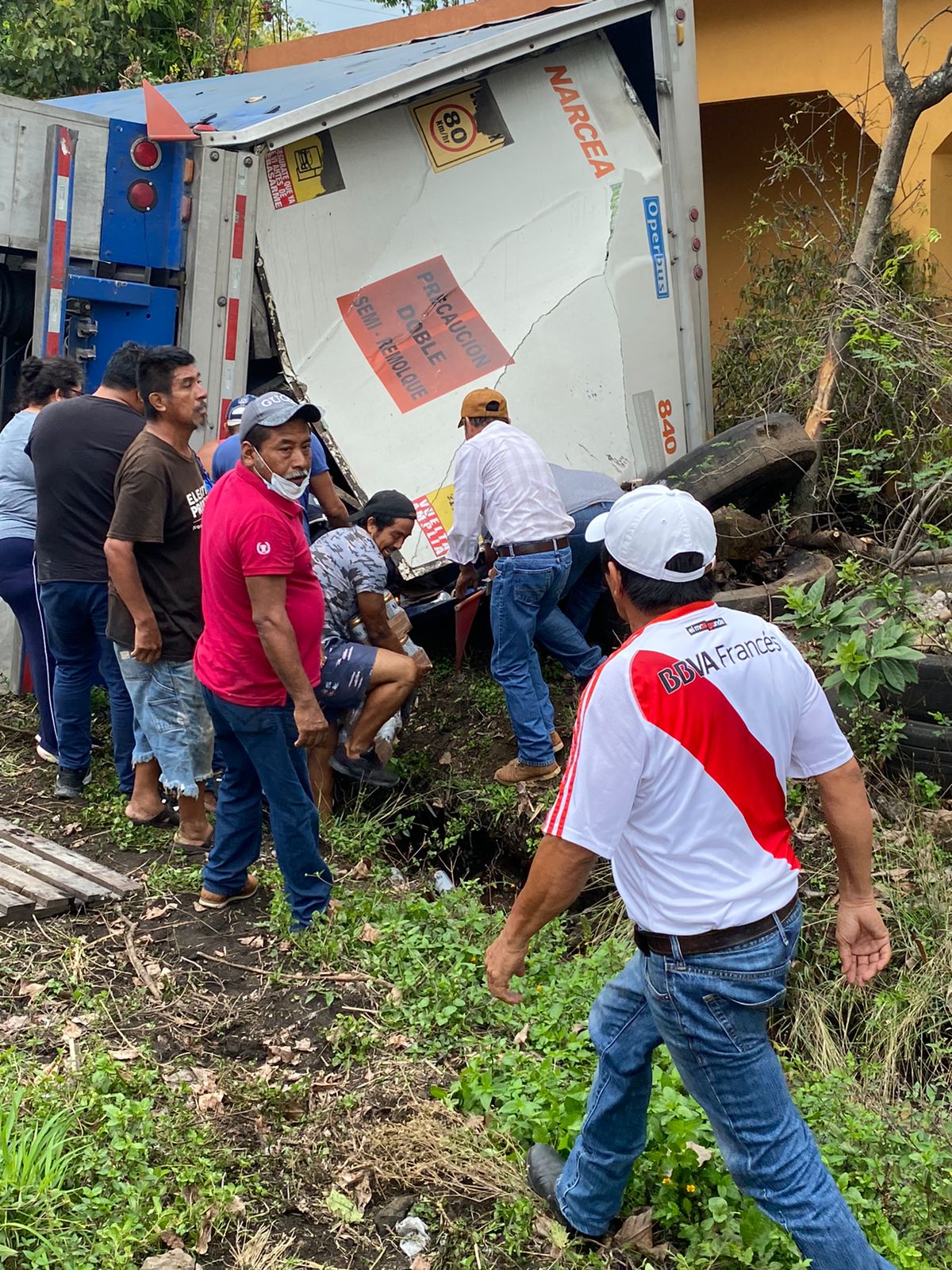 Los hechos ocurrieron alrededor del mediodía de este martes cuando se registró la volcadura de un camión con doble remolque lleno de cerveza en la carretera federal Córdoba-Veracruz a la altura del kilómetro 10+200.