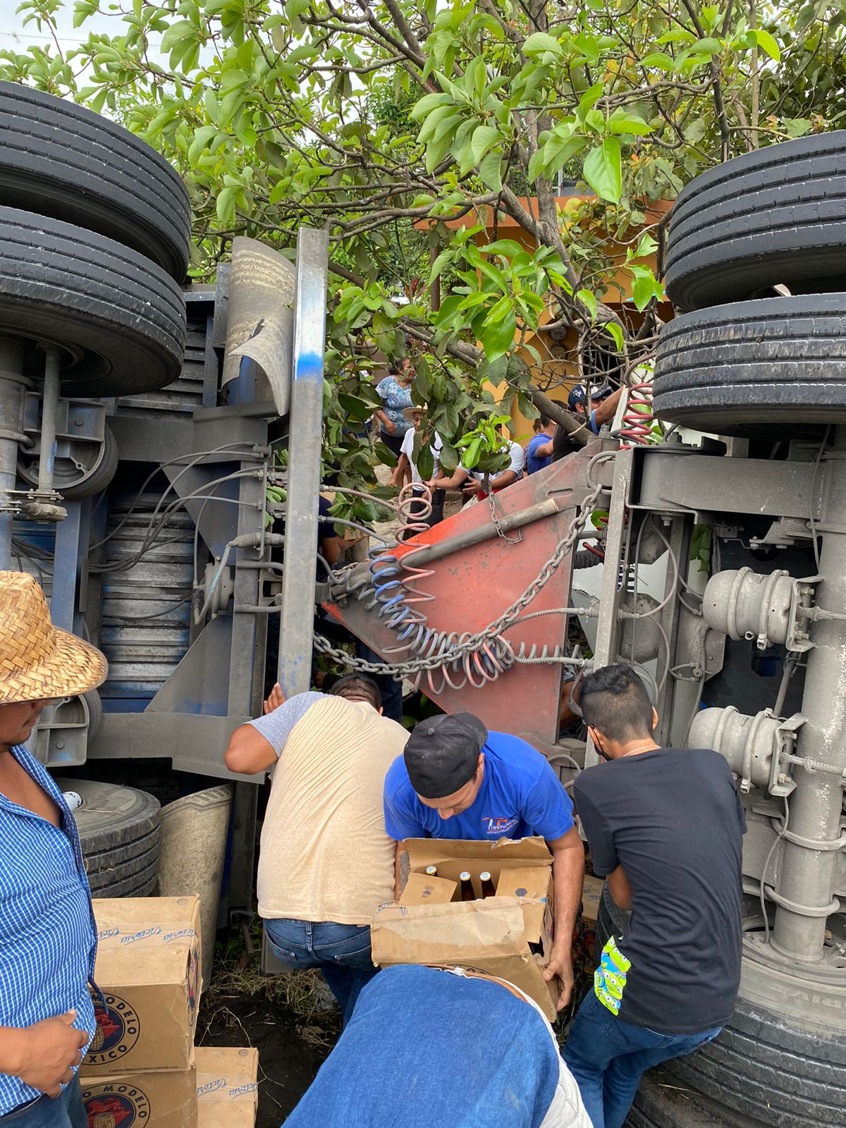 Los residentes de las comunidades cercanas y algunos automovilistas que transitaban por la carretera al darse cuenta que el tráiler transportaba cajas de cerveza se acercaron para llevárselas en cartones o sueltas.