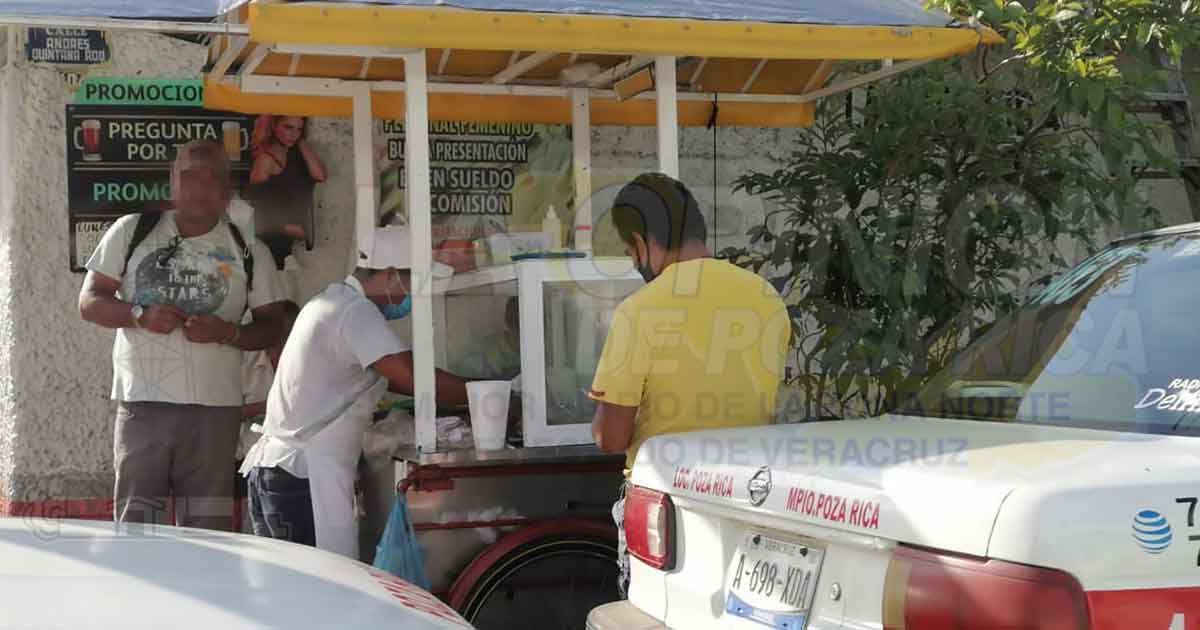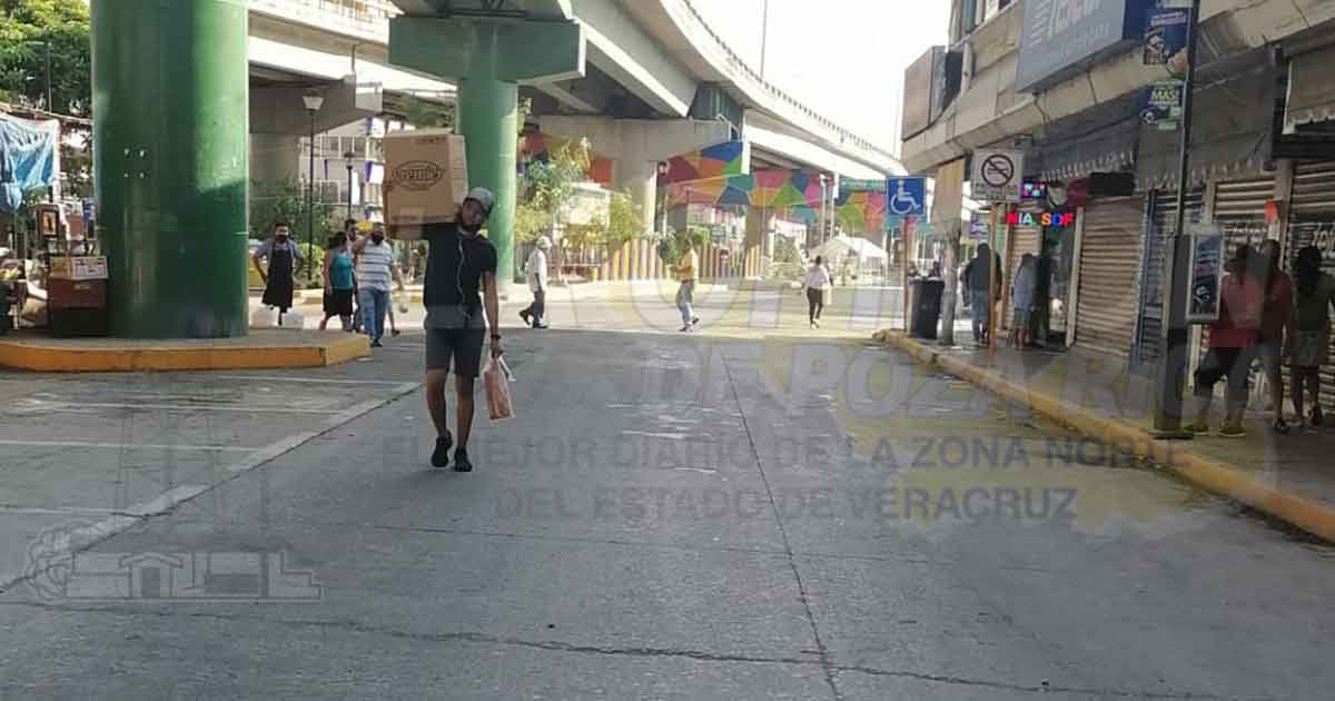 Tan sólo en un breve recorrido por el sector de la Mina se observó a decenas de consumidores y quienes atienden negocios, o venden comida, no traen el cubrebocas o lo utilizan mal, esto justo cuando a partir de este día Poza Rica regresa al semáforo rojo.